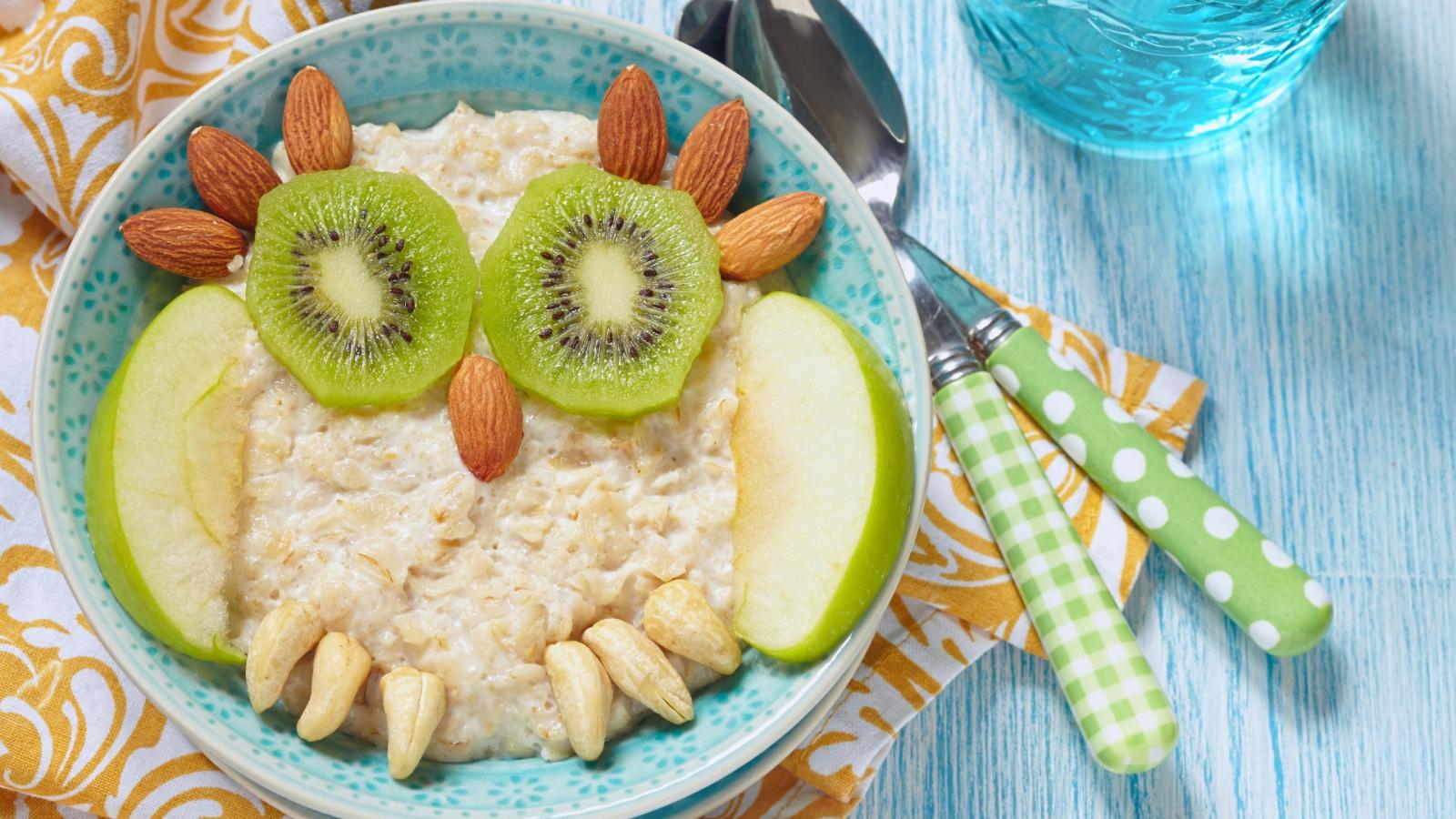 Обои Овсяная каша с орехами, киви и яблоками для ребенка
