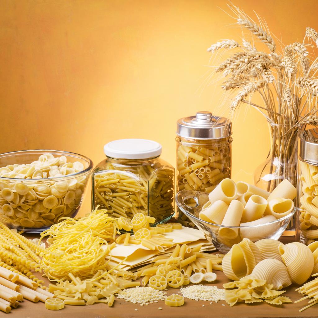 Обои Макаронные изделия на столе в банках