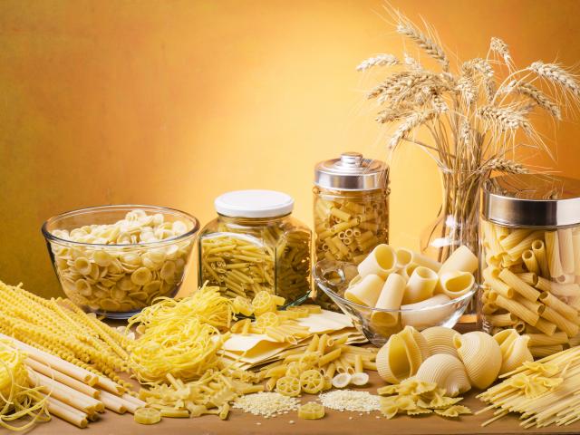 Обои Макаронные изделия на столе в банках