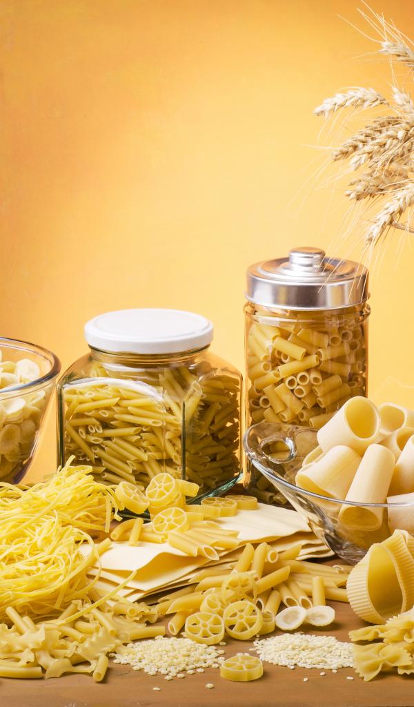 Обои Макаронные изделия на столе в банках