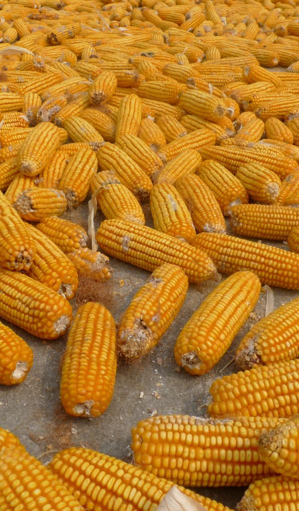 Обои Желтые початки кукурузы с зелеными листьями на столе