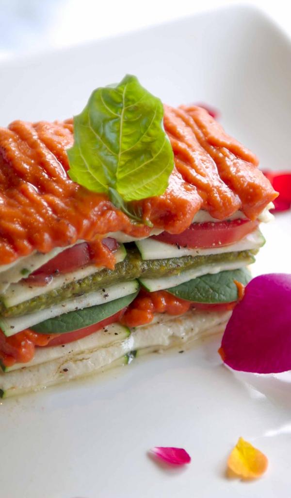 Обои Лазанья на белой тарелке с розовым цветком