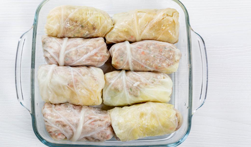 Обои Вкусные голубцы в стеклянной посуде на столе