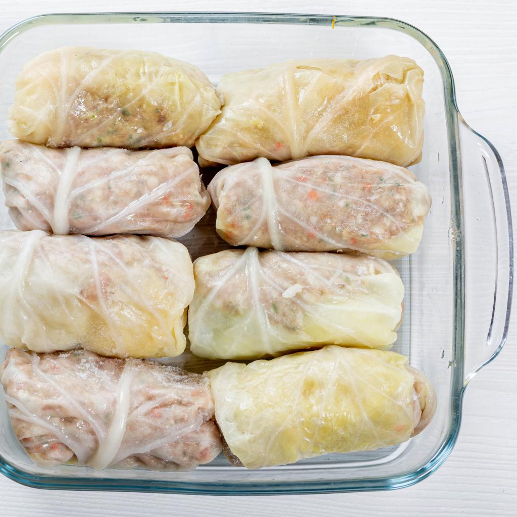 Обои Вкусные голубцы в стеклянной посуде на столе