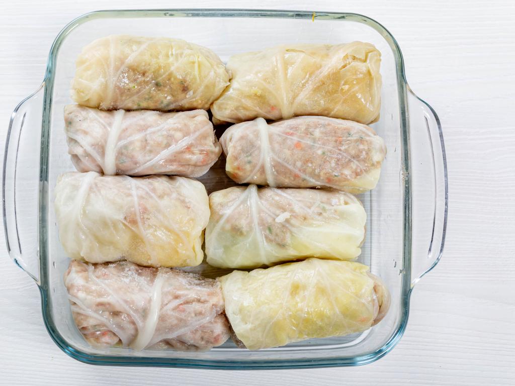 Обои Вкусные голубцы в стеклянной посуде на столе
