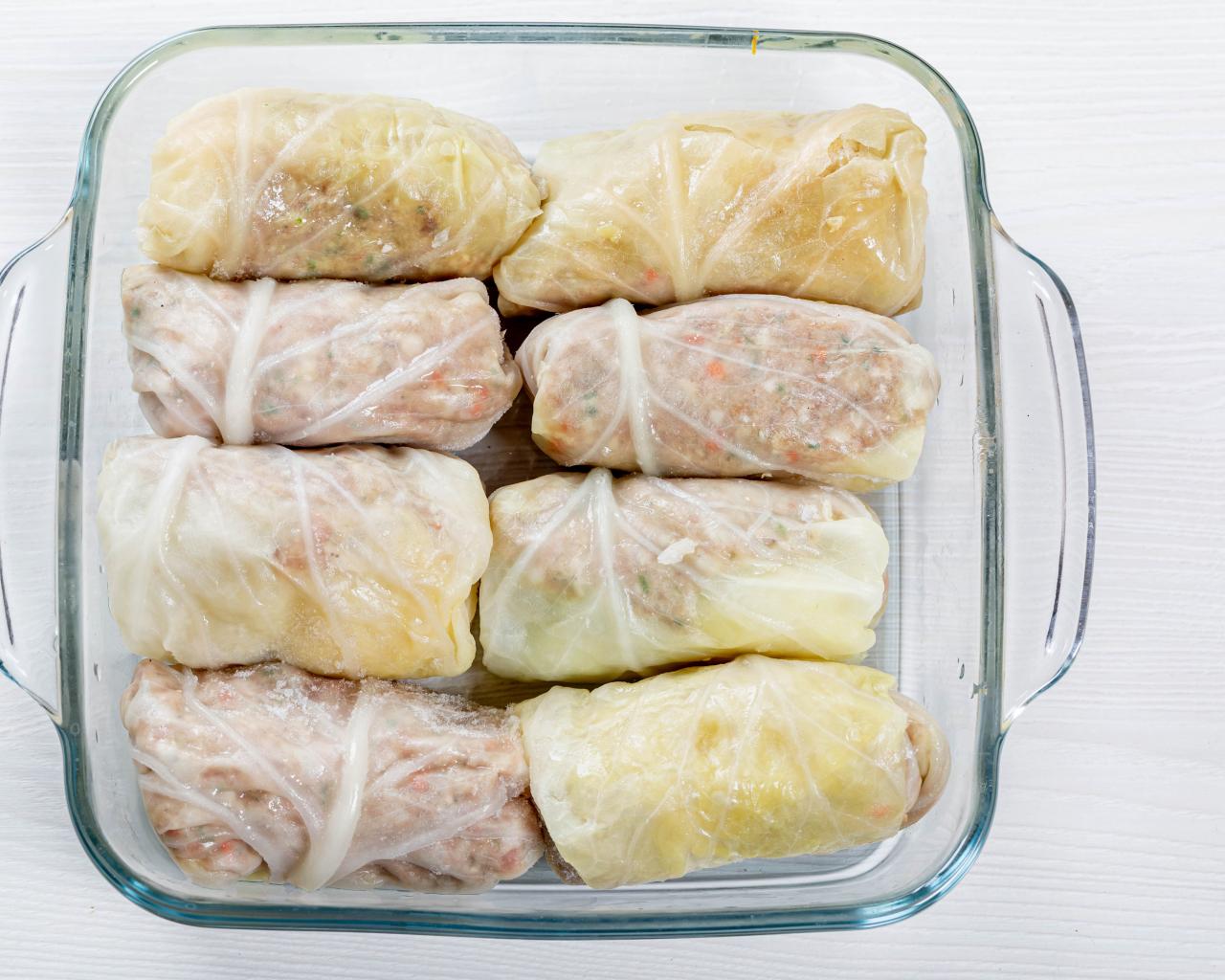 Обои Вкусные голубцы в стеклянной посуде на столе