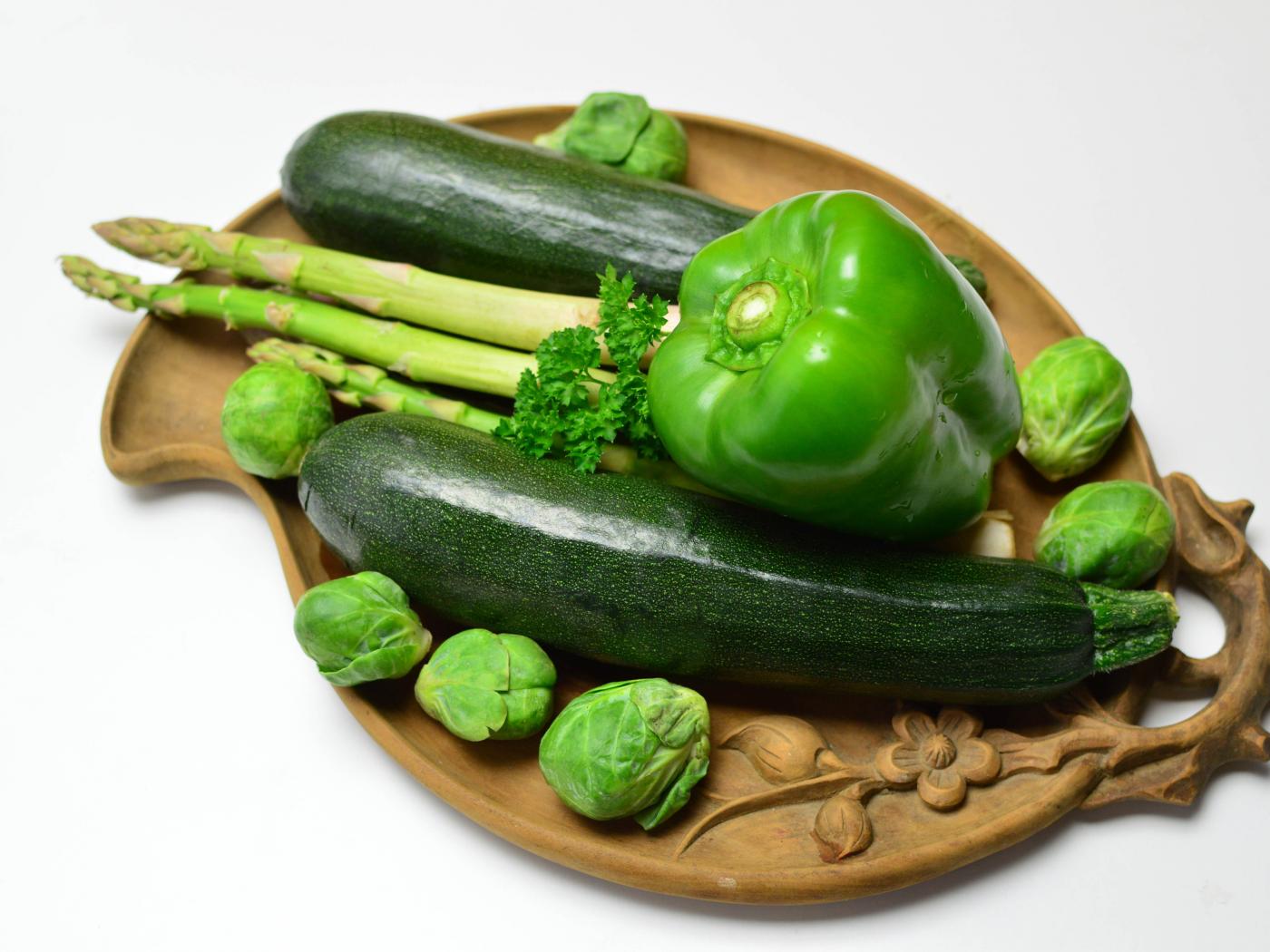 Обои Кабачки, перец, капуста и спаржа на белом фоне
