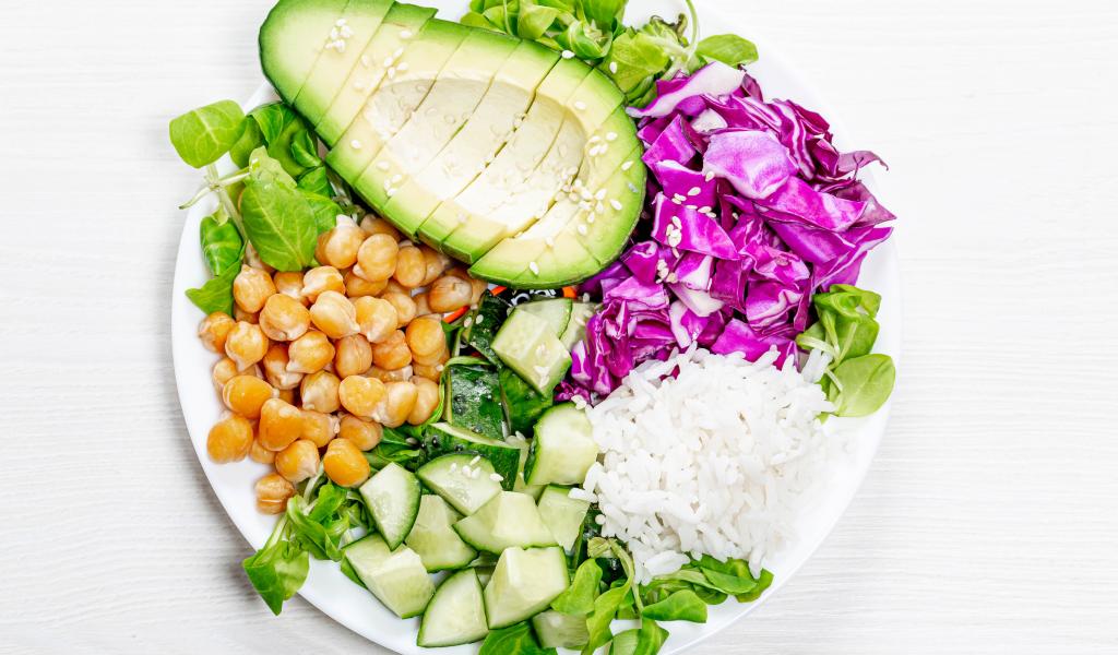 Обои Рис с овощами на белом фоне