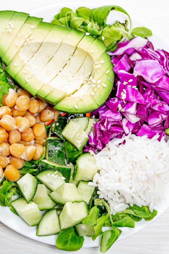 Обои Шашлык с рисом и овощами в тарелке на белом фоне