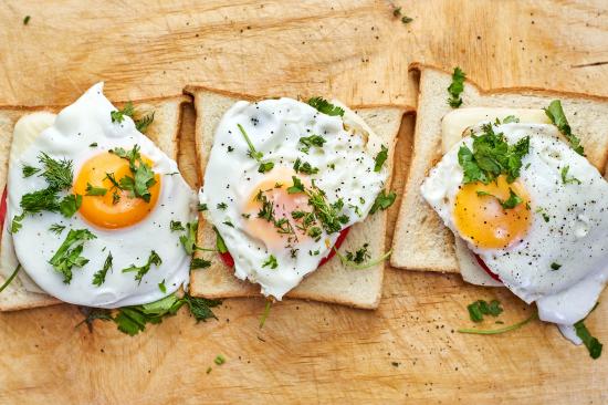 Обои Бутерброды с яичницей, помидорами и зеленью
