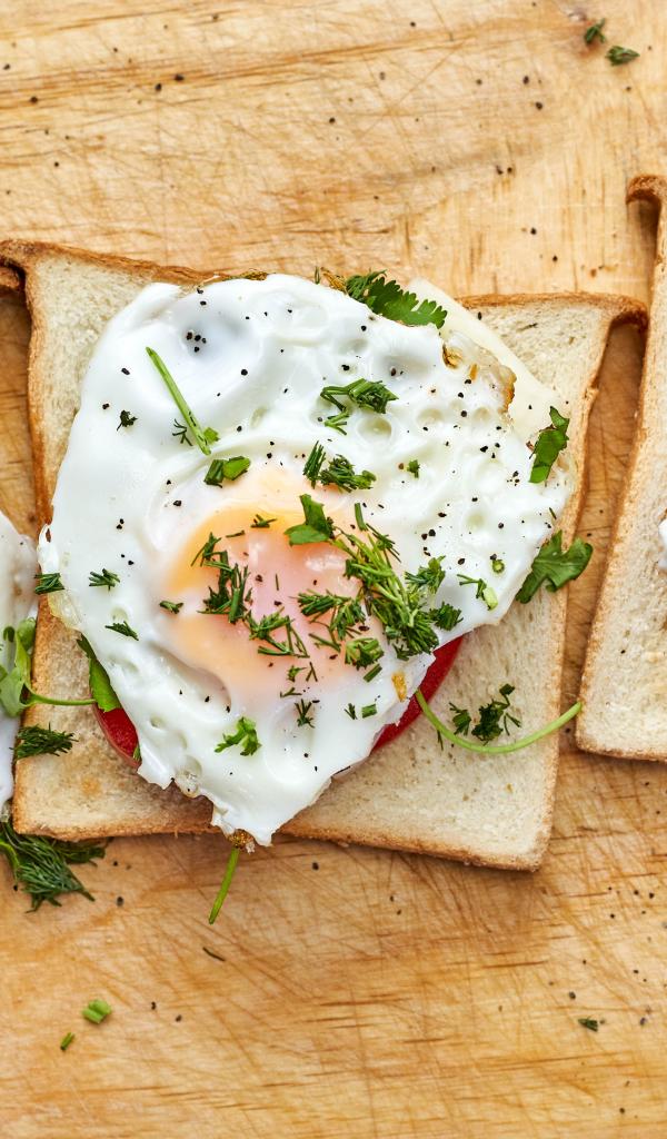 Обои Бутерброды с яичницей, помидорами и зеленью