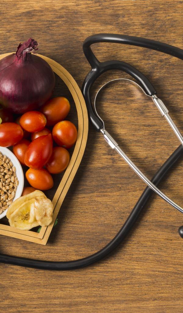 Обои Свежие овощи и зерна пшеницы на столе фонендоскопом