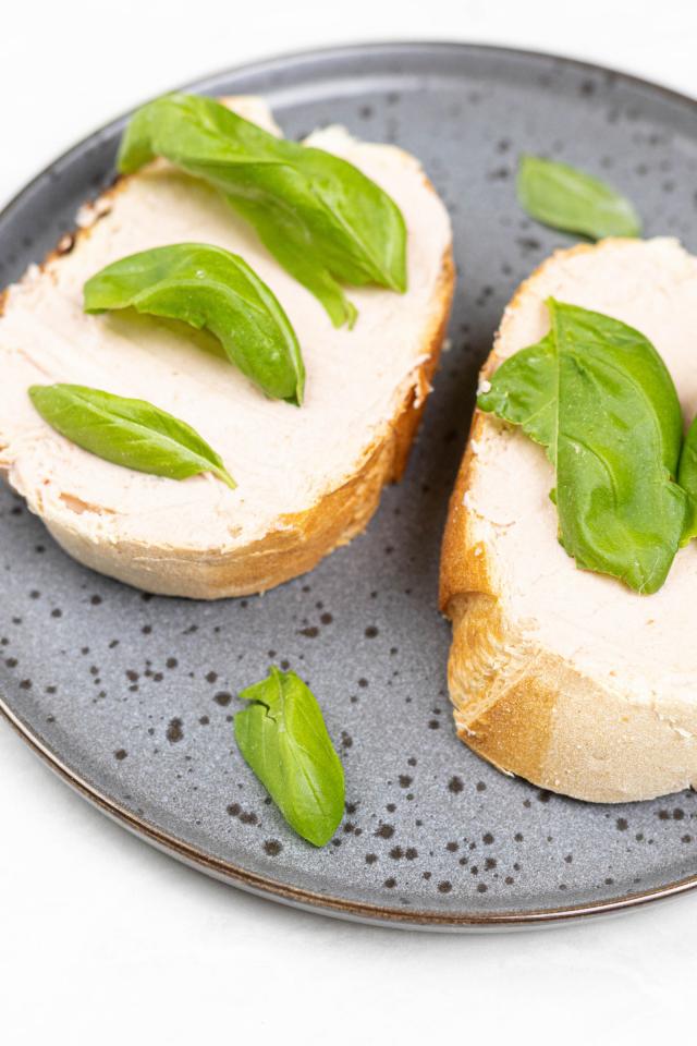 Обои Два бутерброда с листьями базилика