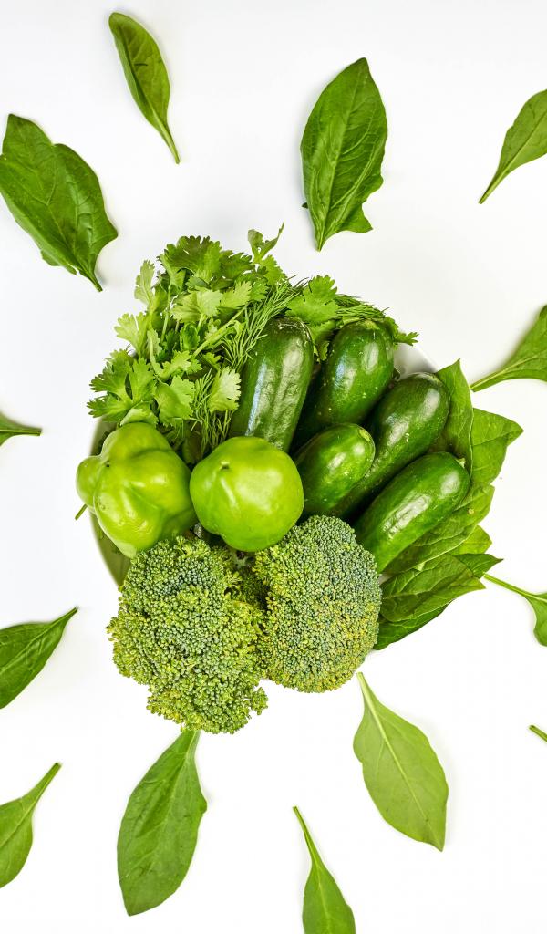 Обои Зеленый набор овощей вегетарианца на белом фоне