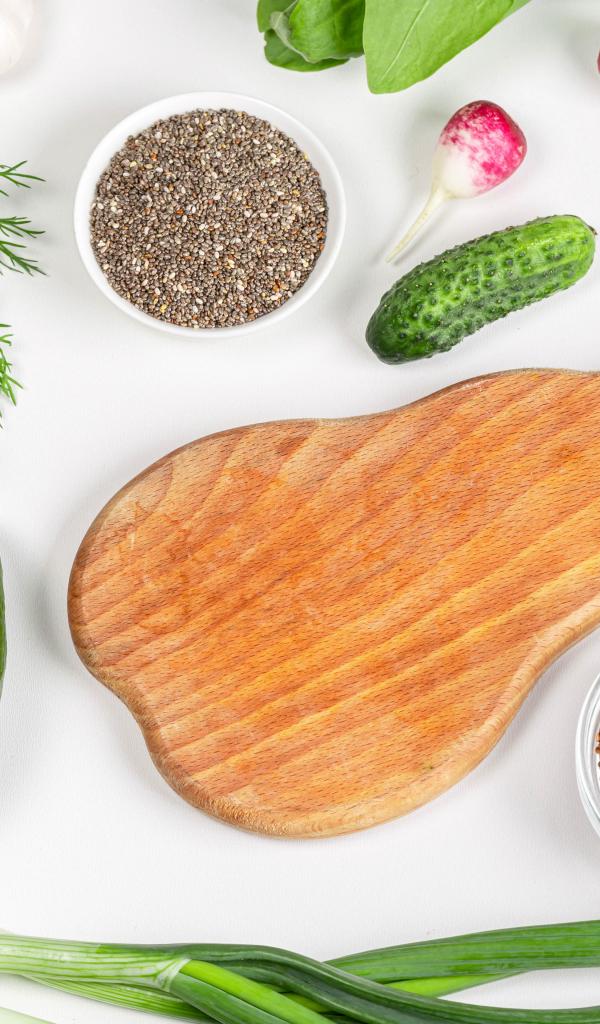 Обои Свежие огурцы, авокадо, редис и укропом на столе с зернами