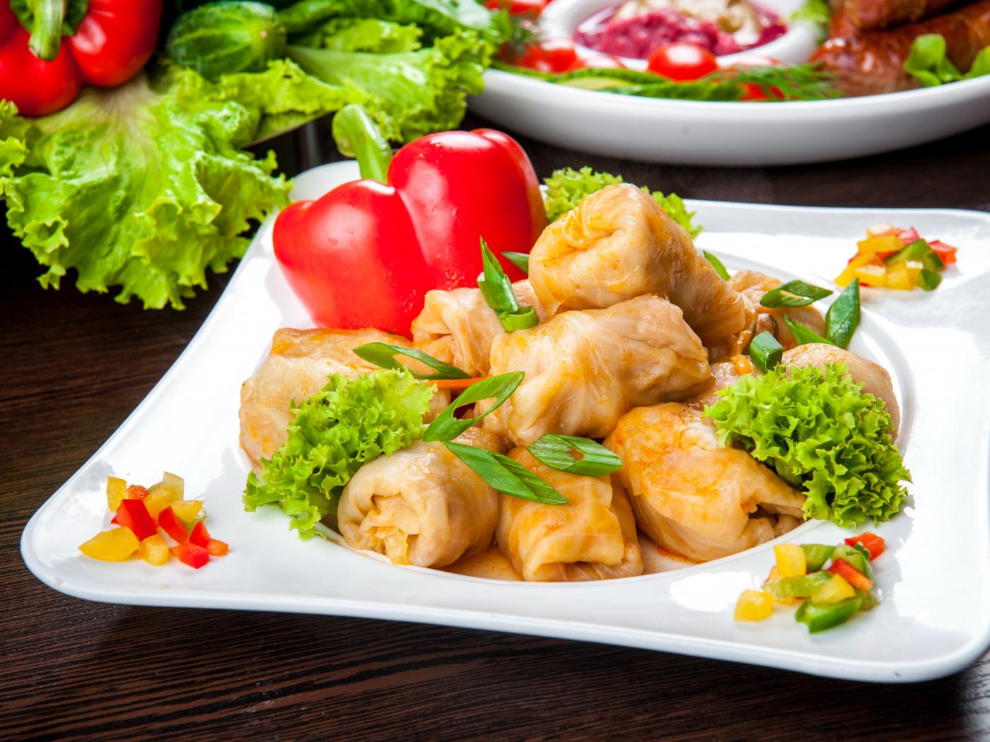 Обои Аппетитные голубцы на тарелке с перцем