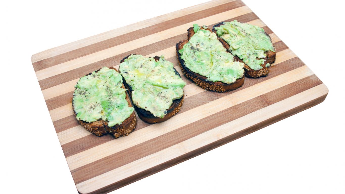 Обои Бутерброды с черного хлеба на доске на белом фоне
