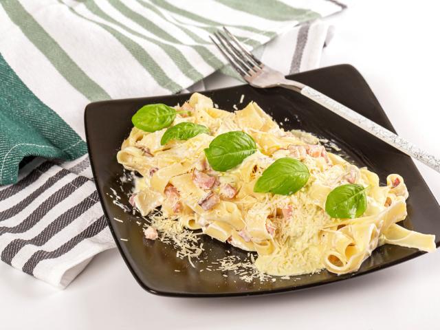 Обои Макароны на тарелке с тертым сыром и кусочками мяса