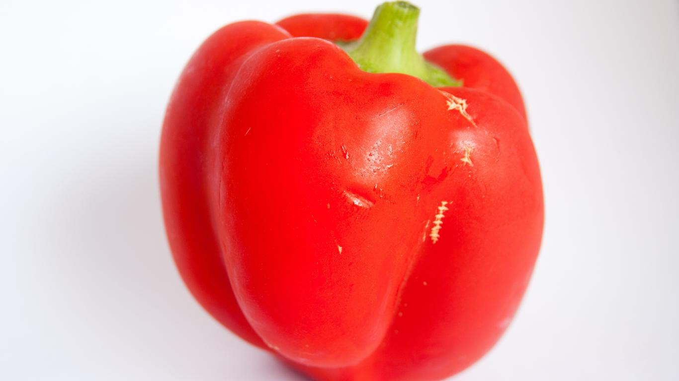 Обои Большой красный болгарский перец на сером фоне