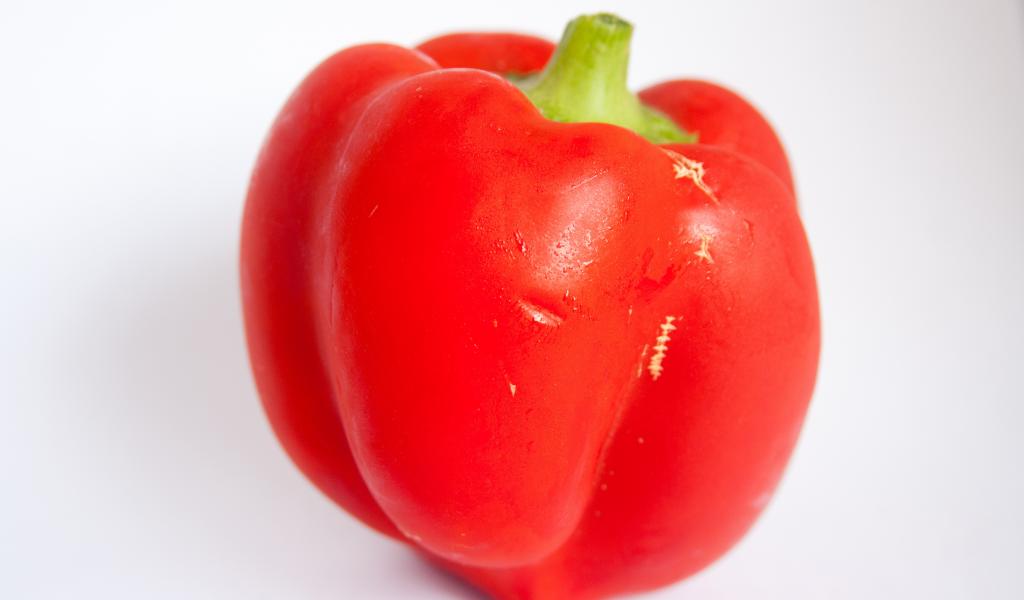 Обои Большой красный болгарский перец на сером фоне