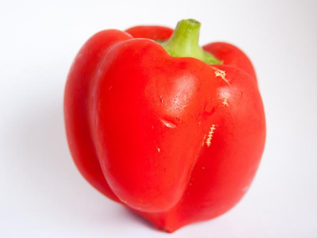 Обои Большой красный болгарский перец на сером фоне