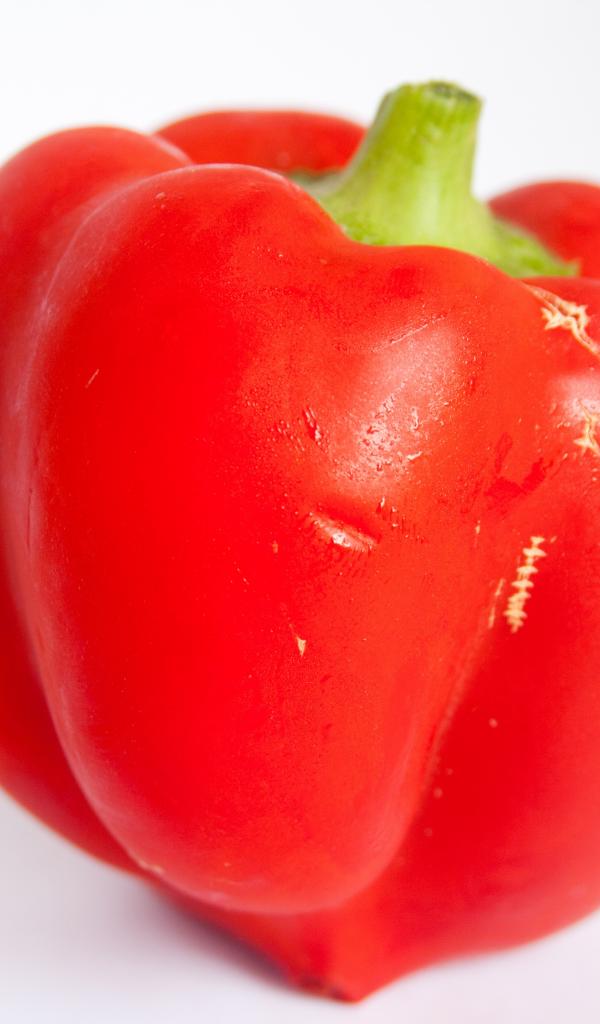 Обои Большой красный болгарский перец на сером фоне