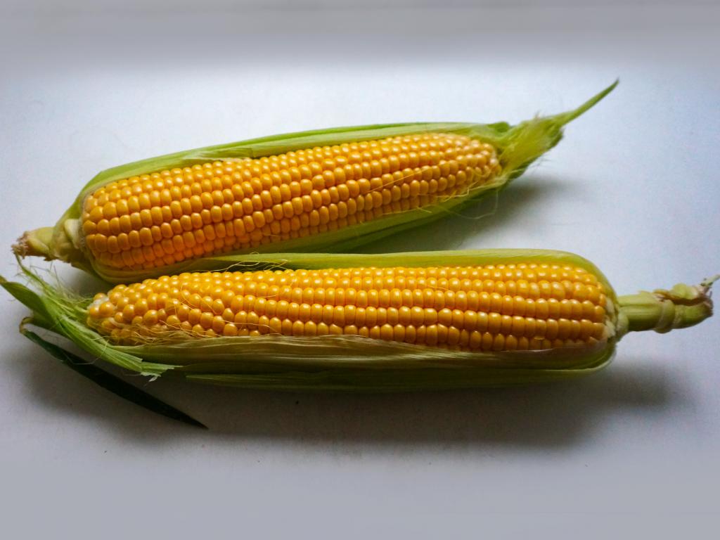 Обои Два початка кукурузы на сером фоне
