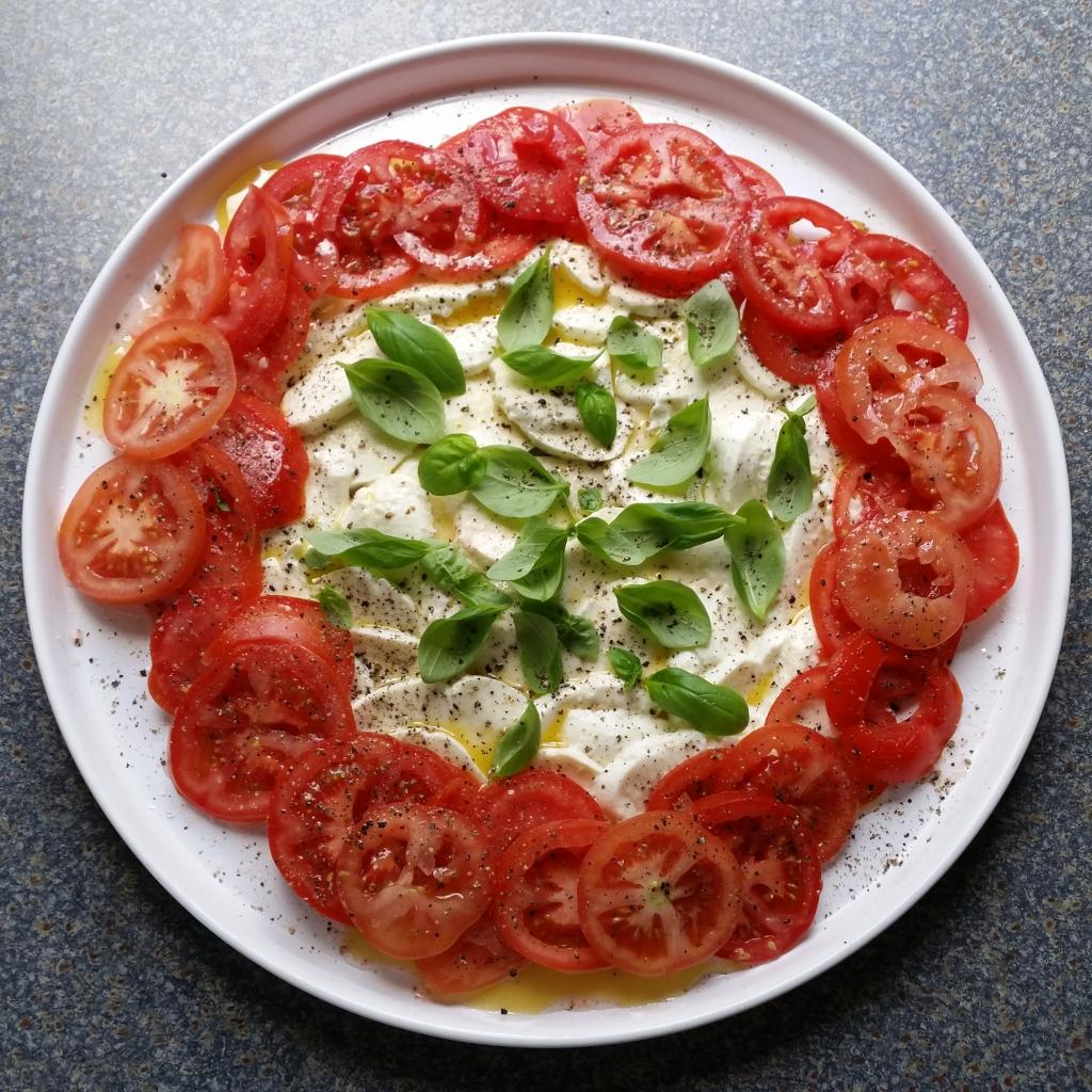 Обои Итальянский сыр моцарелла с помидорами и базиликом