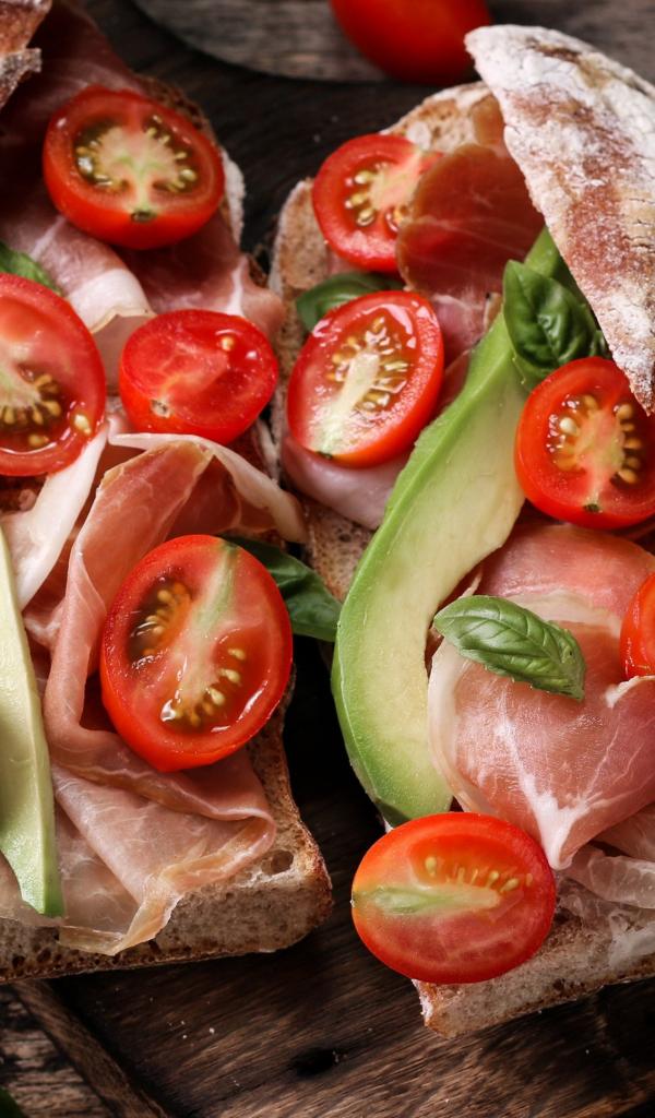 Обои Бутерброды с помидорами, авокадо и беконом
