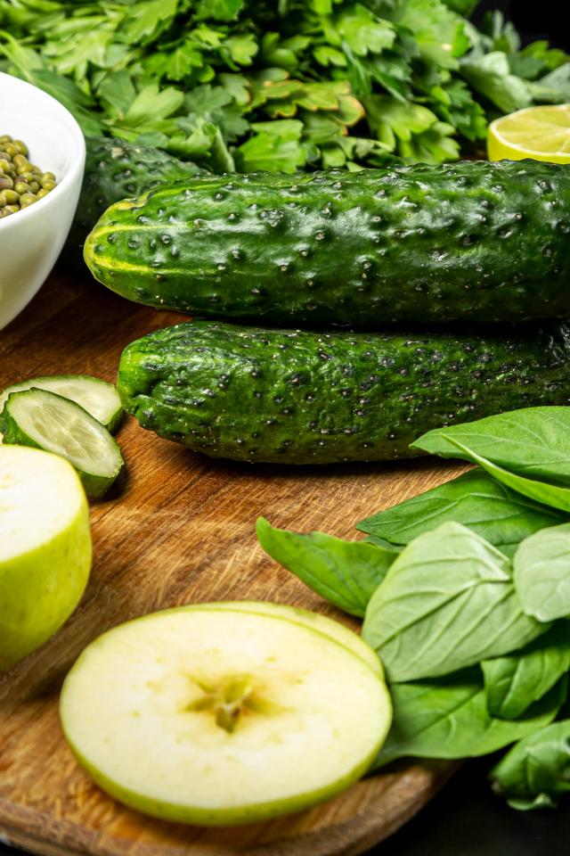 Обои Свежие зеленые овощи и зелень на столе