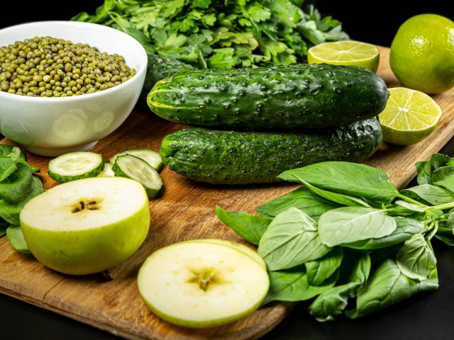 Обои Свежие зеленые овощи и зелень на столе