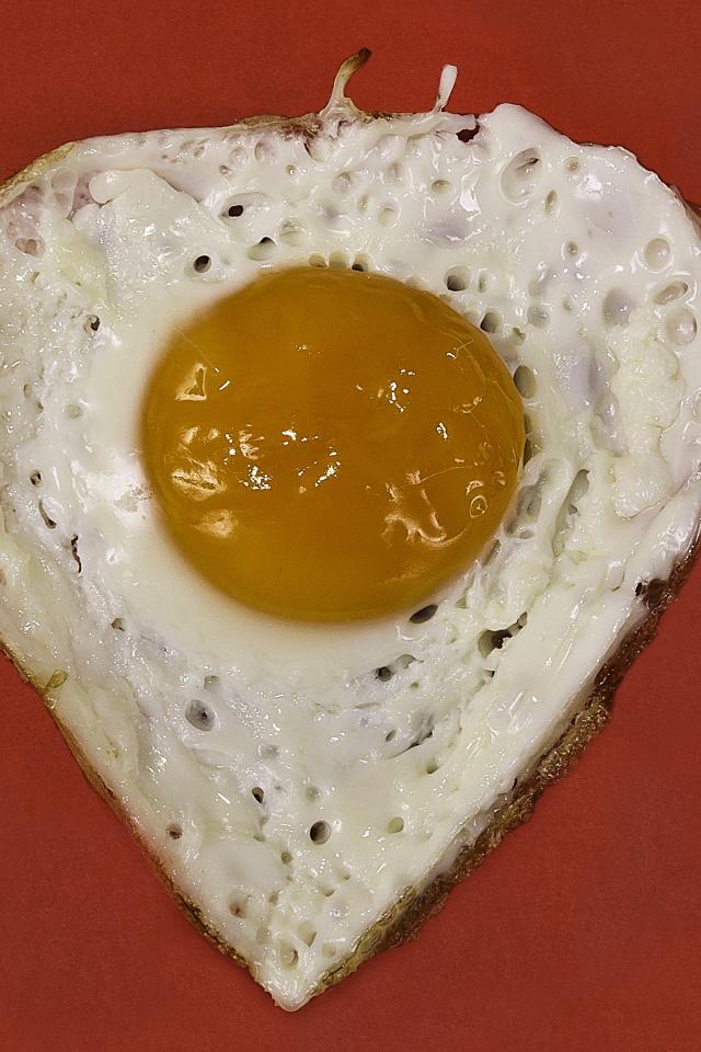 Обои Яичница глазунья на красном фоне