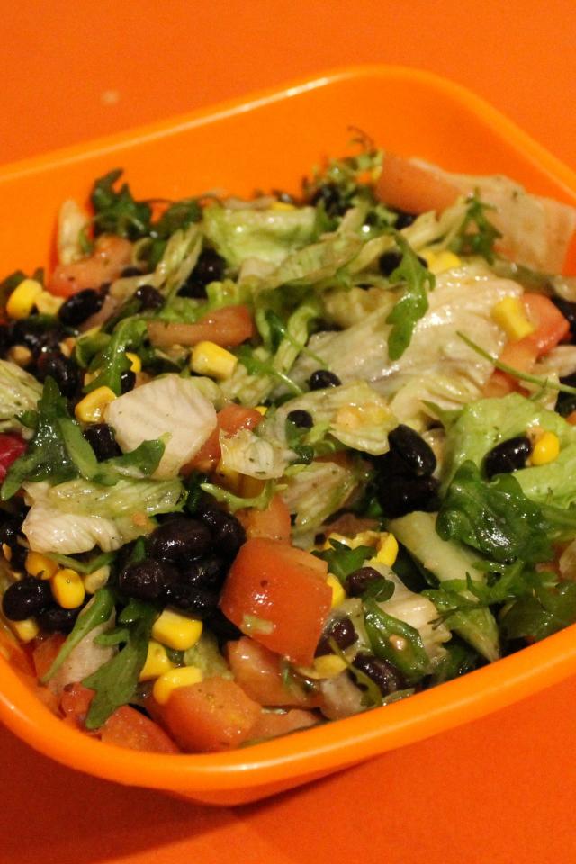 Обои Салат из свежих овощей на оранжевом фоне