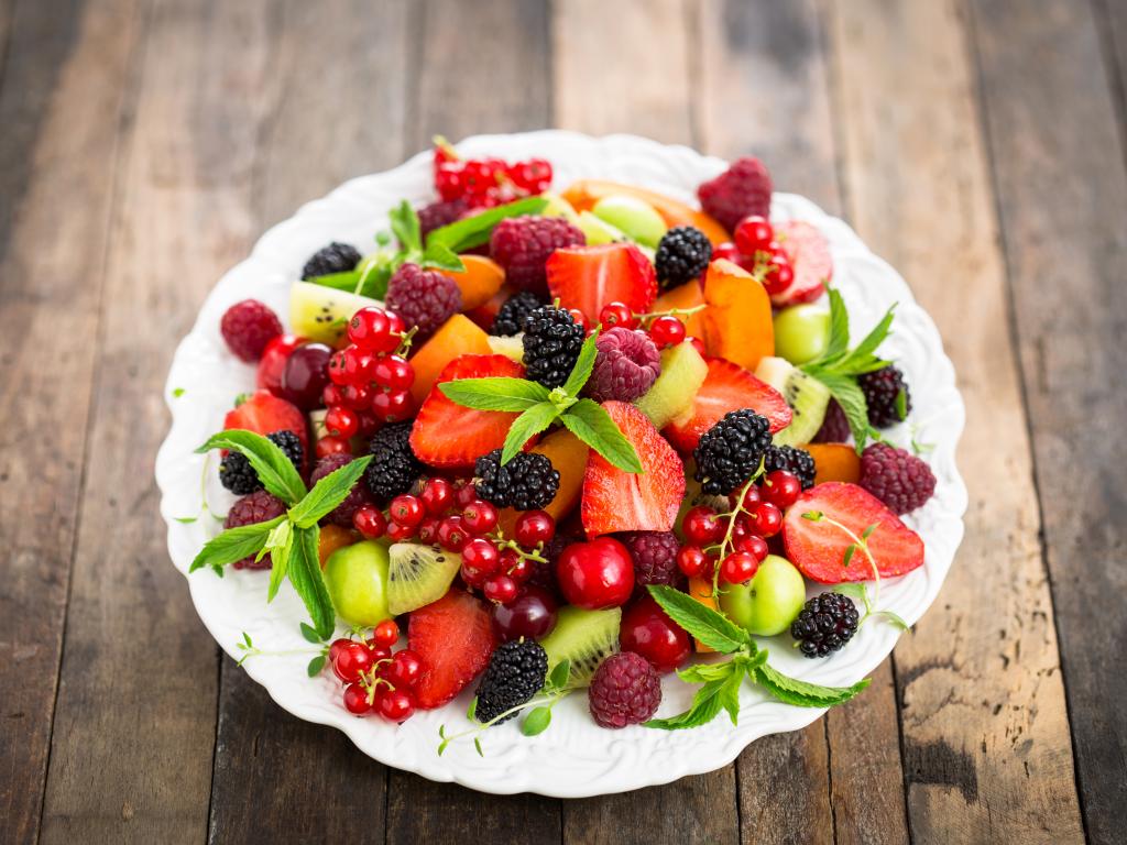 Обои Аппетитные свежие фрукты на белой тарелке
