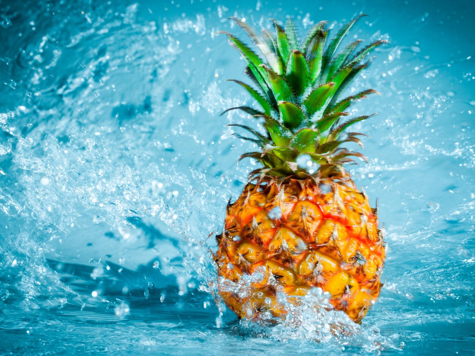 Обои Ананас в воде на голубом фоне