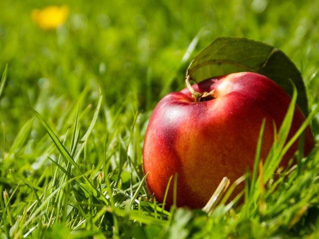 Обои Большой красный нектарин в зеленой траве