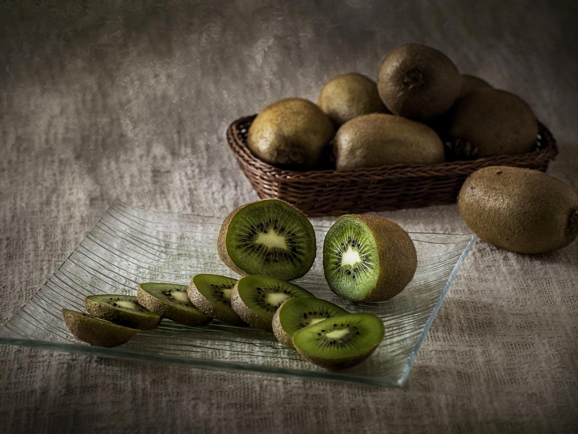Обои Нарезанный фрукт киви на стеклянной тарелке