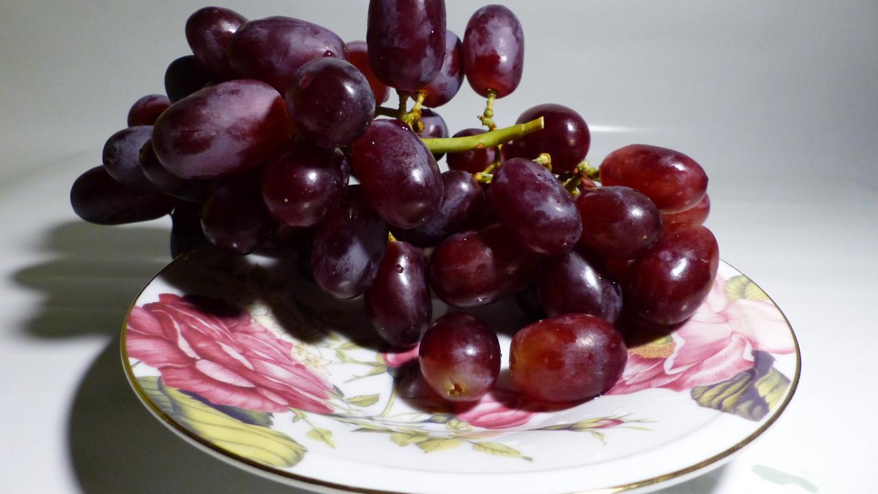 Обои Розовый виноград на тарелке крупным планом