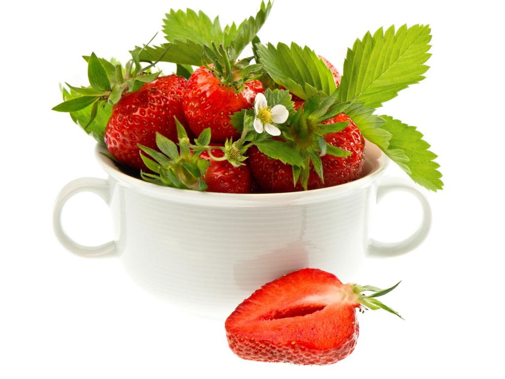 Обои Спелая красная клубника на белом фоне