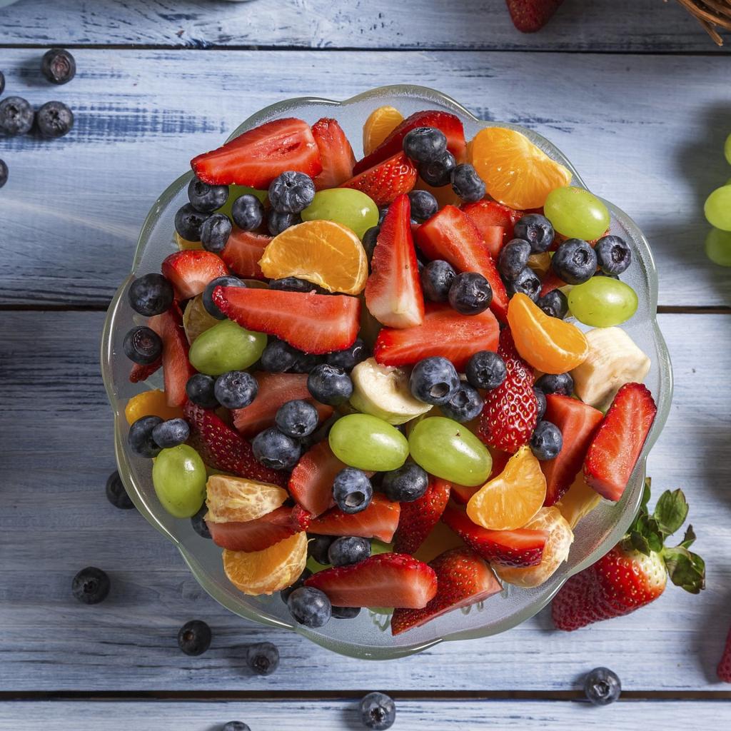Обои Фрукты и ягоды в тарелке на столе