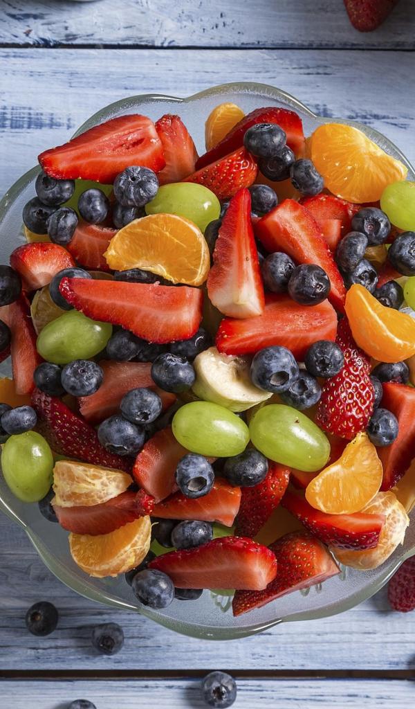 Обои Фрукты и ягоды в тарелке на столе