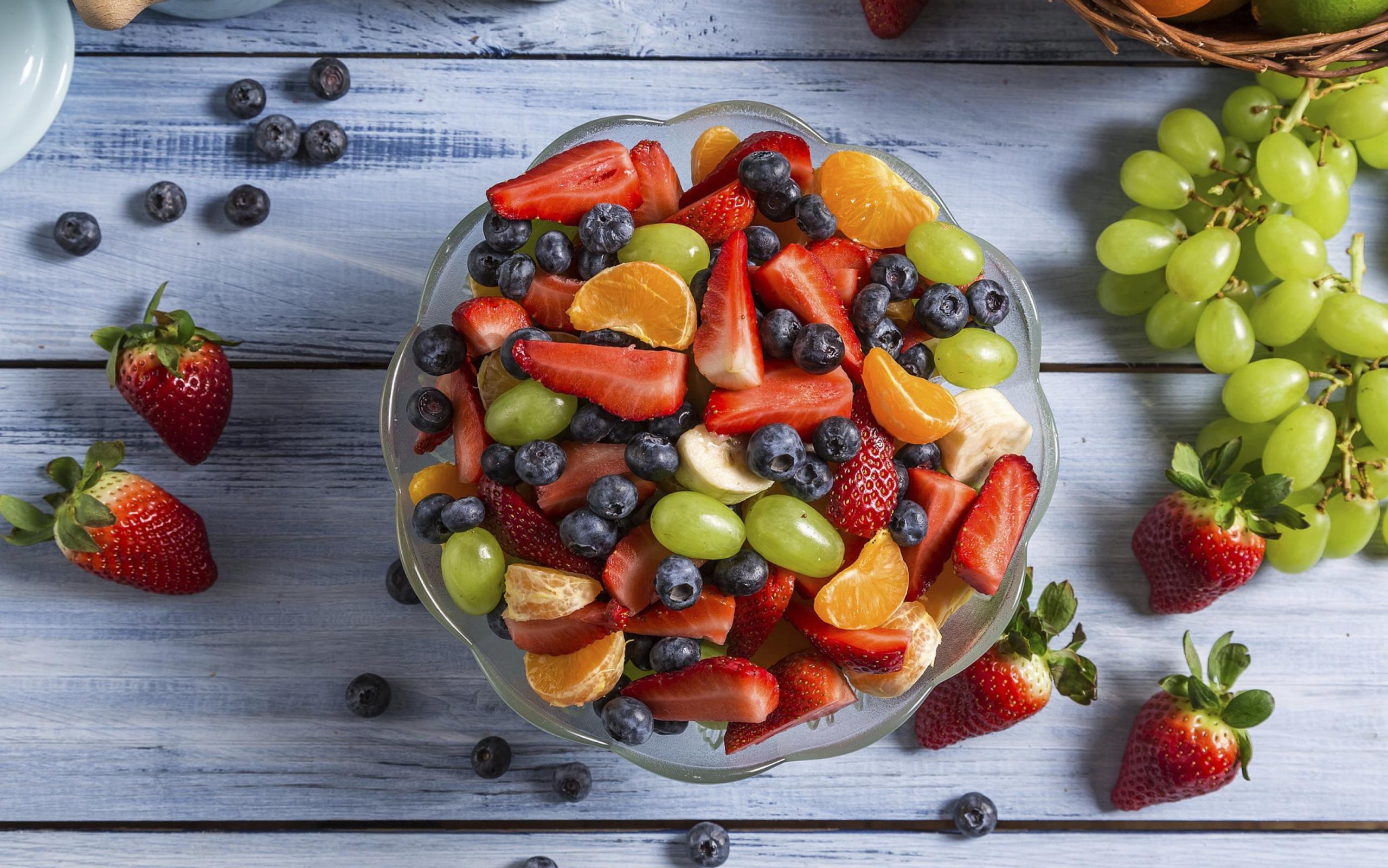 Обои Фрукты и ягоды в тарелке на столе