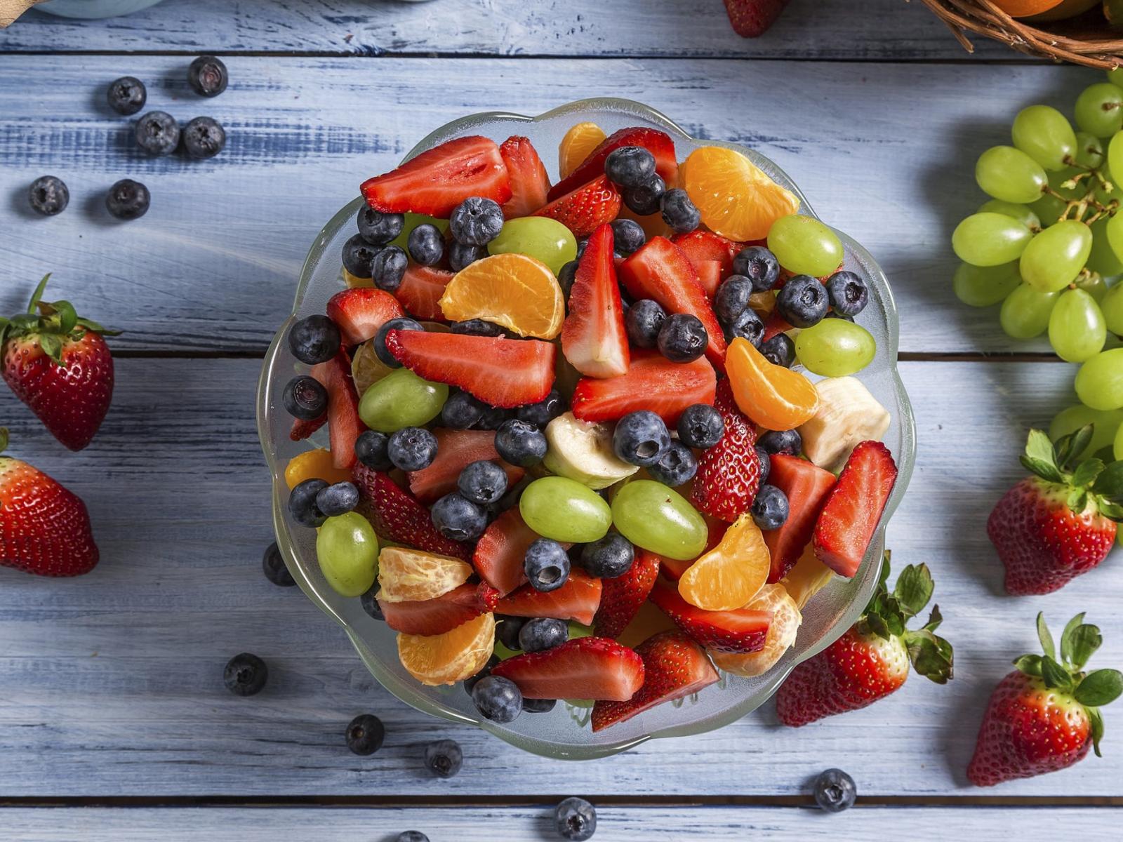 Обои Фрукты и ягоды в тарелке на столе