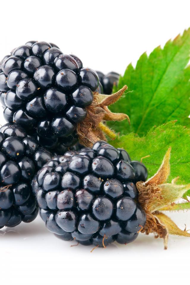 Обои Спелые сочные ягоды ежевики на белом фоне