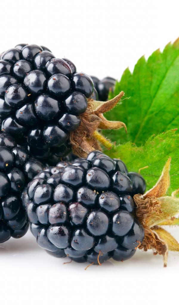Обои Спелые сочные ягоды ежевики на белом фоне