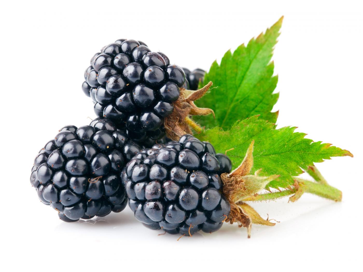 Обои Спелые сочные ягоды ежевики на белом фоне