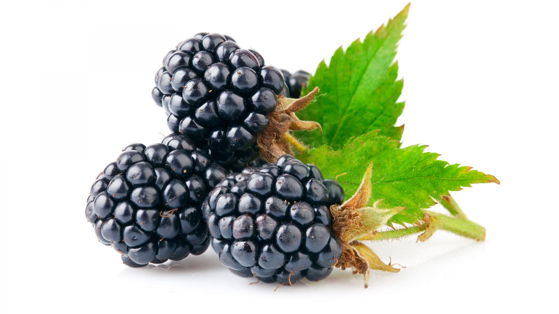 Обои Спелые сочные ягоды ежевики на белом фоне
