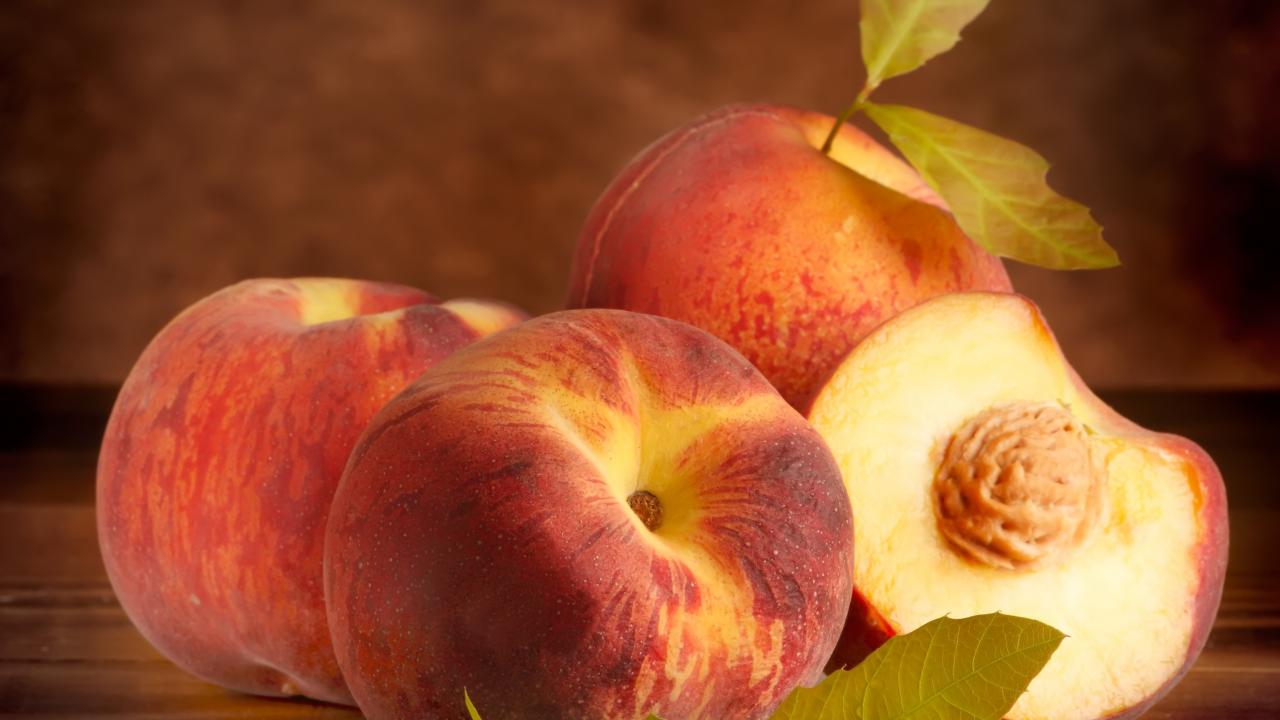 Обои Аппетитные сочные спелые персики крупным планом