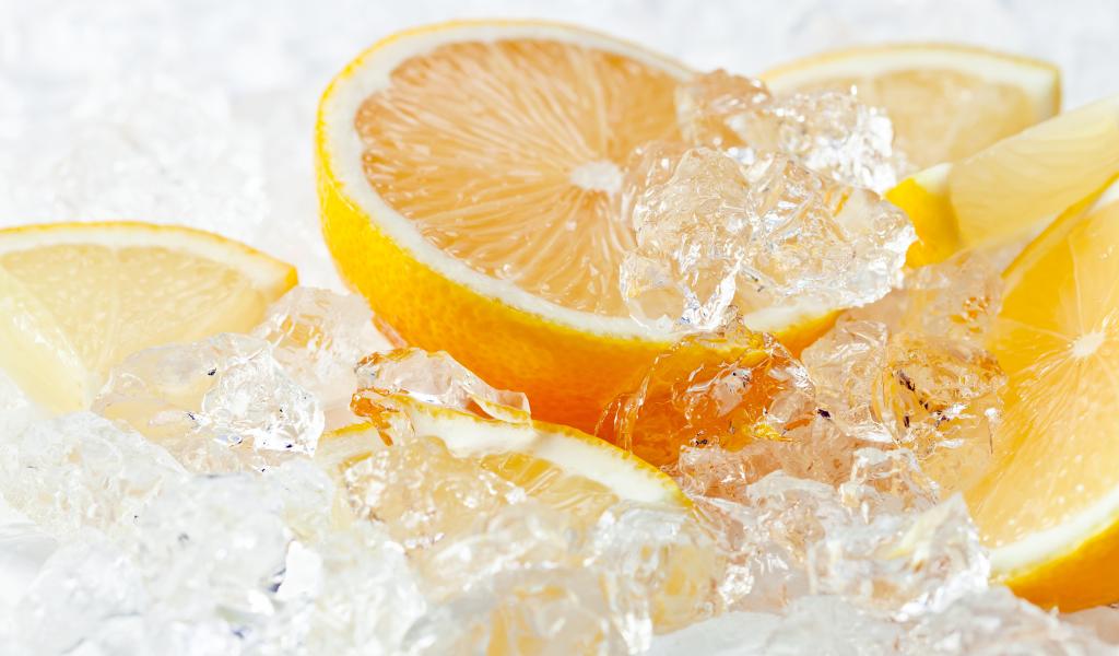 Обои Кусочки лимона со льдом крупным планом
