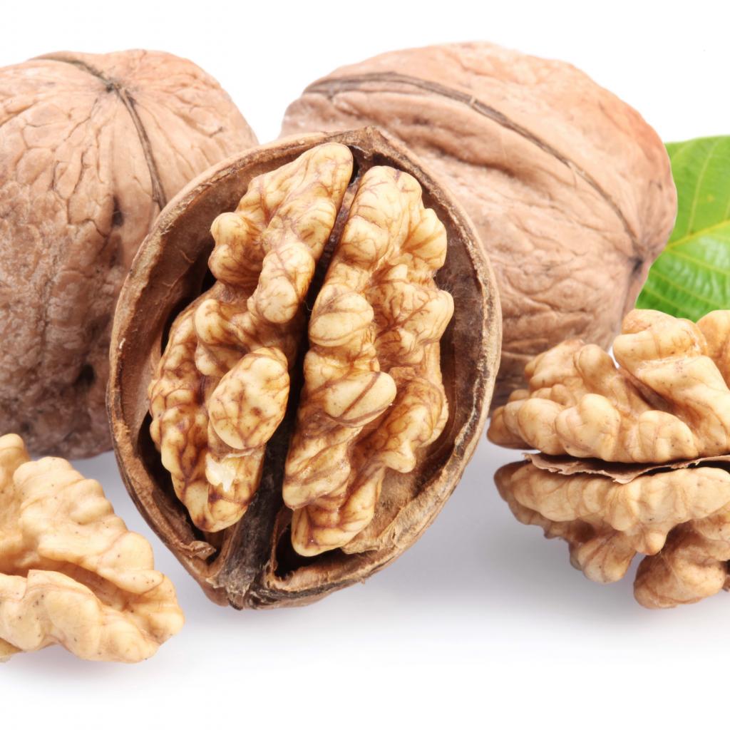 Обои Грецкие орехи на белом фоне крупным планом